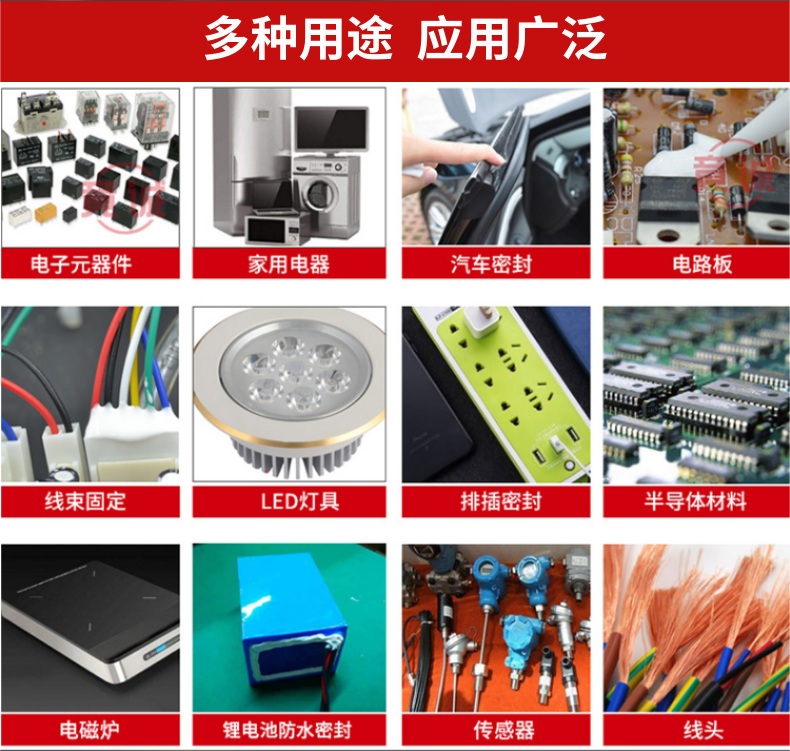 電子密封膠是廣泛的名稱,又稱電子電器產品的粘合劑。主要用于電子展產品的粘貼、密封、封印、涂層、結構粘貼、工行涂層和smt貼片等。